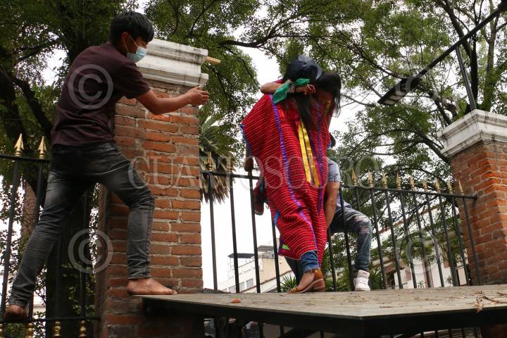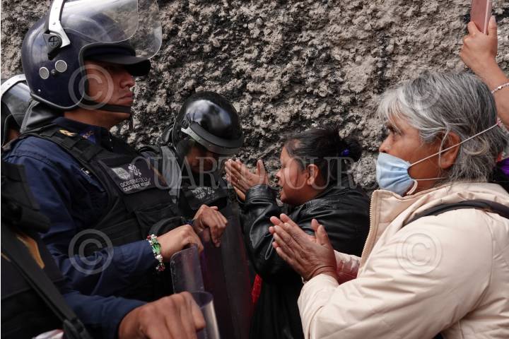 Desplazados de la comunidad triqui de Tierra Blanca, Oaxaca, se mantienen en un encapsulamiento por parte de elementos de la Policía desde hace 36 horas en la calle de Mapimí, colonia Valle Gómez, en el que exigen el diálogo con Martí Batres, secretario de Gobierno, para llegar a un acuerdo y dirigirse hacia el refugio de la Casa del Estudiante