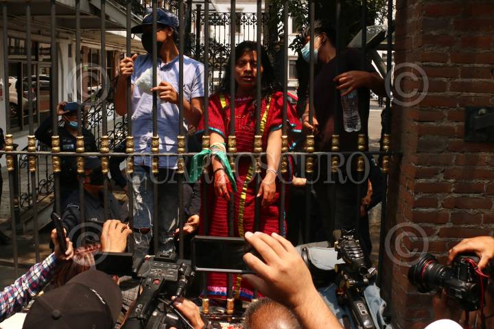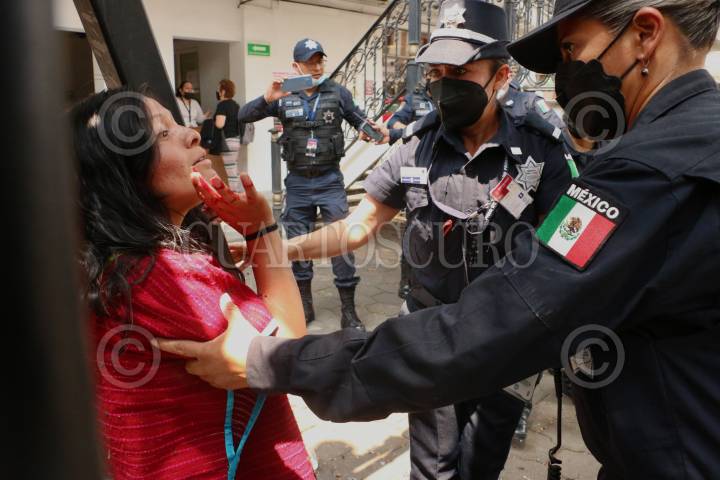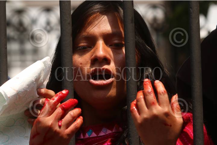 Mujeres triquis desplazadas por la violencia que se vive en Tierra Blanca Copala, Oaxaca, realizaron un bloqueo sobre la avenida Bucareli para posteriormente intentar ingresar a la Secretaría de Gobernación en busca de entablar una mesa de diálogo con
