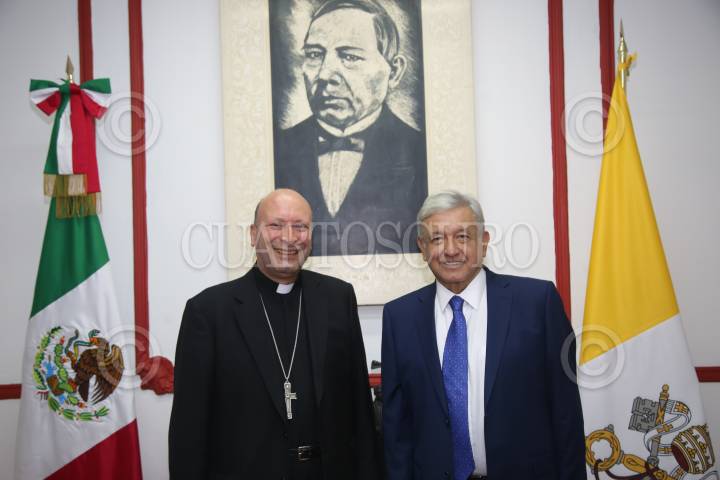 CIUDAD DE MÉXICO, 10SEPTIEMBRE2018.- Andrés Manuel López Obrador, presidente electo de México se reunió con Franco Coppola, nuncio apostólico. FOTO: CUARTOSCURO.COM
