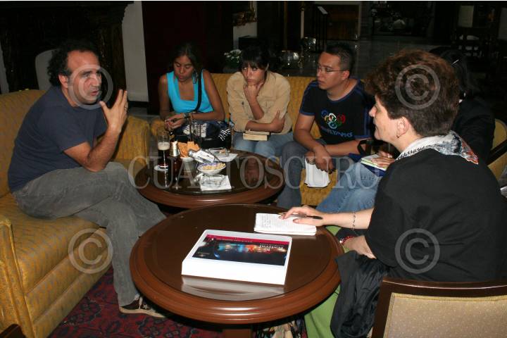 MÉXICO, D.F., 27SEPTIEMBRE2006.- En el marco del 1er. Festival Internacional de Cine Documental de la Ciudad de México, el director peruano Javier Corcuera otorgó una charla a medios de comunicación. Corcuera es director de los documentales "La espalda del mundo" e "Invierno en Bagdad". FOTO: ISAAC ESQUIVEL/CUARTOSCURO.COM