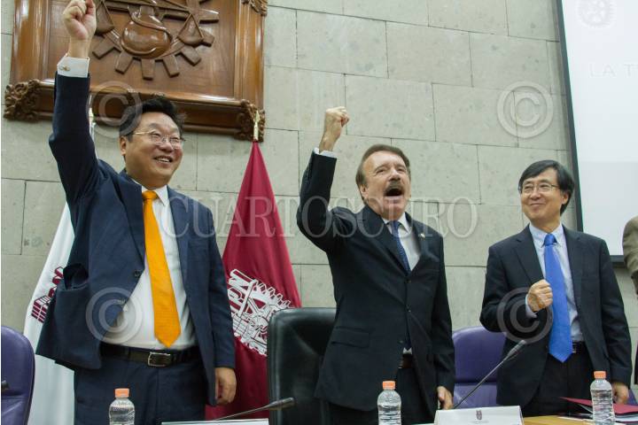 CIUDAD DE MÉXICO, 03JUNIO2019.- Hyunghwan Joo, Ministro de Comercio Industrial y Energía de la República de Corea; Mario Alberto Rodríguez Casas, Director General del IPN y Chang Jae Lee, Visiting Senior Fellow, KDI, encabezarón la presentación del Informe Final del Programa de Conocimiento Compartido con México (Knowledge Sharing Program –KSP–) de la República de Corea del Sur y el IPN en la sala de del Consejo General Consultivo de la Unidad Profesional Adolfo López Mateos. FOTO: ROGELIO MORALES /CUARTOSCURO.COM