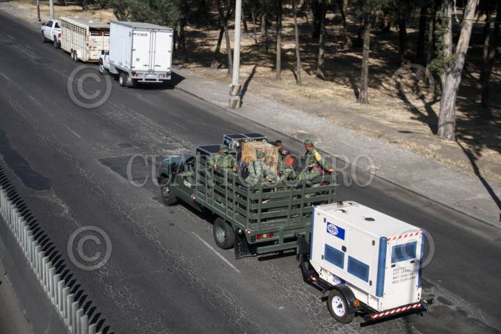 Elementos de Secretaría de la Defensa Nacional recibieron la vacuna contra COVID-19 resguardandola desde la aduana dem AICM para el arranque del simulacro del arranque de vacunación contra el virus SARS-CoV-2 que se llevará a cabo en una instalación militar al sur de la Ciudad0