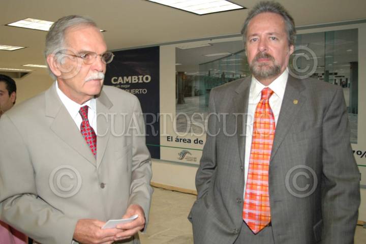 MEXICO, D.F. 25MAYO2005.- Recorrido por las nueva ampliación de obras que se rializan en el aeropuerto internacional de la ciudad de México, el arquitecto Enrique Velasco León y el director del aeropuerto Hector Velasquez Corona. FOTO: CUARTOSCURO.COM