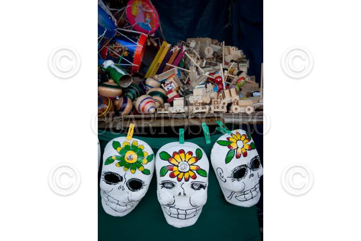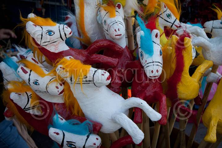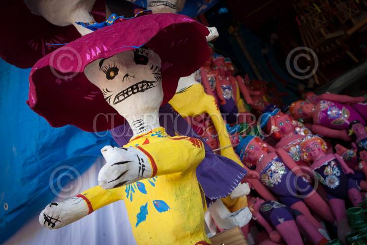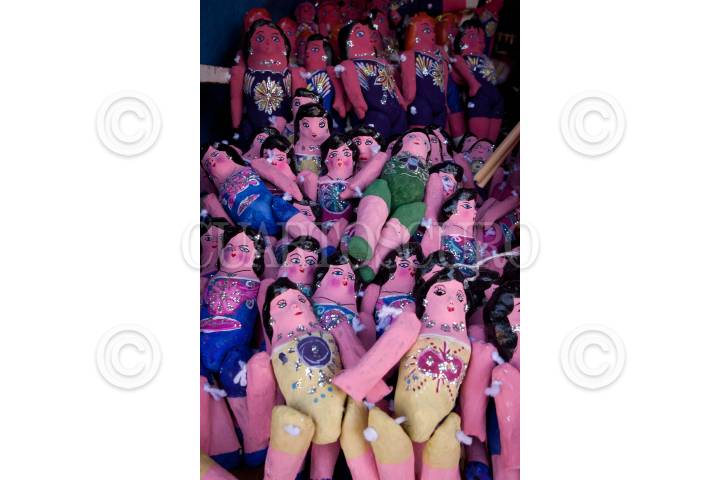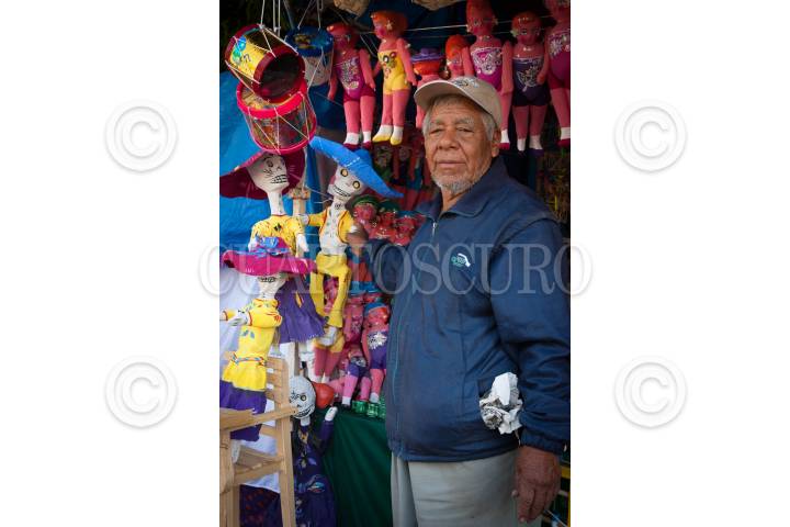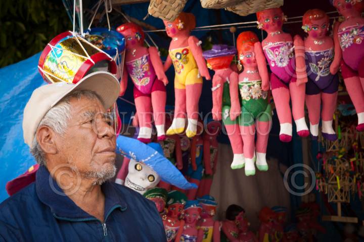 QUERÉTARO, QUERÉTARO, 29OCTUBRE2011.- Don Jesús Guerrero, artesano cartonero, se ha dedicado por más de 3 generaciónes a la elaboración de muñecas, calaveras, chacos, caballos de cartón. Originario de Celaya, Guanajuato, cada año elabora miles de estas artesanías para la tradicional vendimia en las fiestas de Corpus y Dias de Muertos. Actualmente sus ventas han bajado hasta en un 60 por ciento dada la entrada al mercado de artesanías de productos de plástico importados de Honk Kong, China. FOTO: DEMIAN CHÁVEZ/CUARTOSCURO.COM