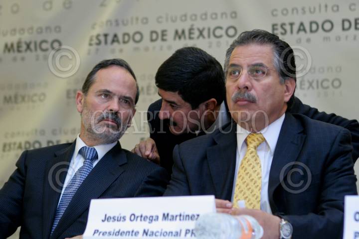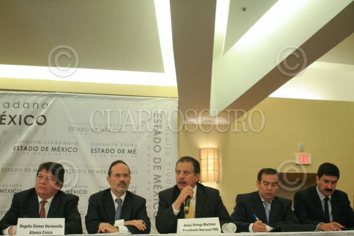 MÉXICO, D.F., 02MARZO2011.- Rogelio Gómez Hermosillo, Alianza Cívica, Gustavo Madero, presidente nacional del PAN, Jesús Ortega, dirigente nacional del PRD, Octavio Germán Olivares, dirigente estatal del PAN y Javier Corral, anunciaron una consulta ciudadana en el Estado de México, a realizarse el próximo domingo, para definir si los mexiquense quieren una alianza entre ambos partidos. FOTO: MOISÉS PABLO/CUARTOSCURO.COM