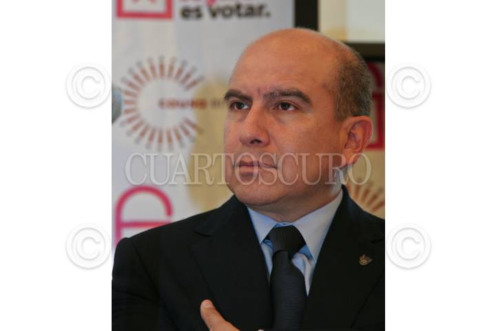 MÉXICO, D.F., 13ABRIL2011.- Francisco López Corral, secretario ejecutivo general del Instituto Electoral del Estado de México (IEEM), ofreció una conferencia de prensa en conjunto con la organización Ciudadanos por una Causa en Común A.C., donde se presentó una campaña para impulsar el voto en las próximas elecciones del Estado de México. FOTO: MISAEL VALTIERRA/CUARTOSCURO.COM