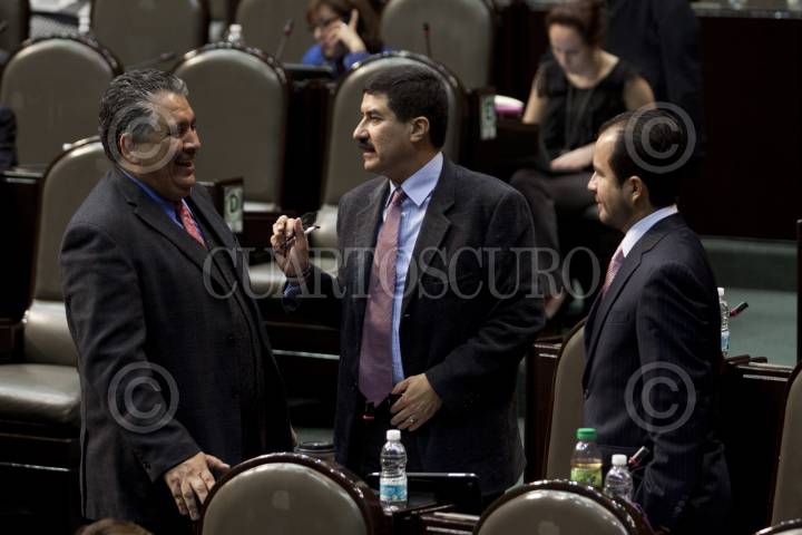 MÉXICO, D.F., 10NOVIEMBRE2011.- El diputado del PRD Guadalupe Acosta Naranjo conversa con los diputados del PAN Javier Corral y Cesar Nava durante la sesión ordinaria de la Cámara de Diputados. FOTO: RODOLFO ANGULO/CUARTOSCURO.COM