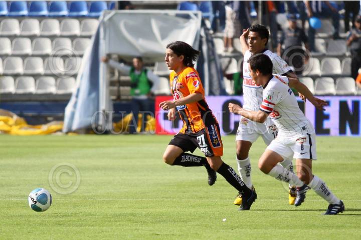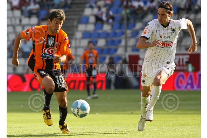 PACHUCA, PACHUCA, 01MAYO2010.- Damian Manso de los Tuzos del Pachuca corre con el balón durante el encuentro en contra de los Rayados del Monterrey en el partido de ida de cuartos de final del Torneo Bicentenario que se realizo en esta ciudad. Los Tuzos ganaron 1 gol por 0 a los Rayados. FOTO: RODOLFO ANGULO/CUARTOSCURO.COM