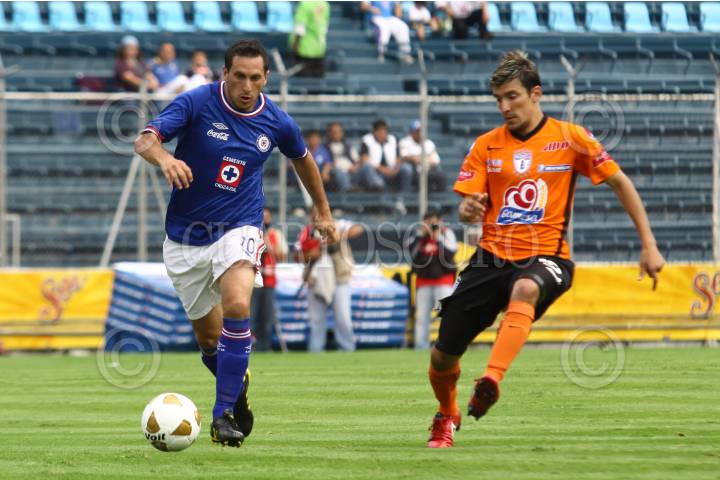 MÉXICO, D.F., 14AGOSTO2010.- Christian Giménez de la Maquina Celeste del Cruz Azul corre con el balón durante el encuentro en contra de los Tuzos del Pachuca en el partido de la jornada 4 del torneo Apertura 2010 que se realizo en el estadio Azul ganando la Maquina Celeste 4 goles por 1. FOTO: RODOLFO ANGULO/CUARTOSCURO.COM