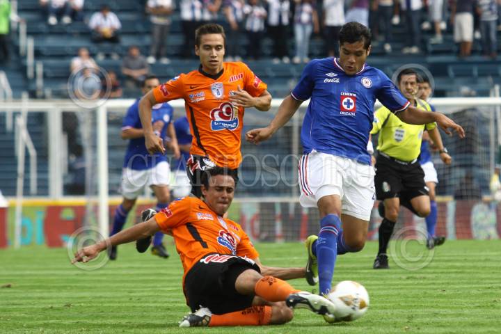 MÉXICO, D.F., 14AGOSTO2010.- Javier Orozco de la Maquina Celeste del Cruz Azul corre con el balón durante el encuentro en contra de los Tuzos del Pachuca en el partido de la jornada 4 del torneo Apertura 2010 que se realizo en el estadio Azul ganando la Maquina Celeste 4 goles por 1. FOTO: RODOLFO ANGULO/CUARTOSCURO.COM