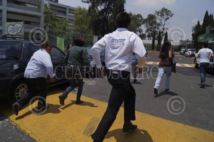 MÉXICO, D.F., 06JUNIO2012.- Isabel Miranda de Wallace, candidata a la Jefatura de Gobierno del Distrito Federal por el Partido Acción Nacional, interrumpió la conferencia que realizaba ante los estudiantes de la UAM campus Iztapalapa, y tuvo que salir corriendo a su vehículo, por la puerta trasera, del edificio F de esta institución, debido a que los estudiantes gritaban en su contra y reclamaban su presencia en la UAM. En la foto integrantes de su equipo de campaña huyen de la Universidad. FOTO: PEDRO ANZA /CUARTOSCURO.COM