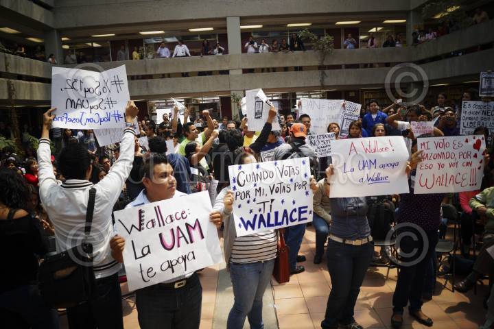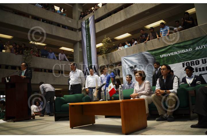 MÉXICO, D.F., 06JUNIO2012.- Isabel Miranda de Wallace, candidata a la Jefatura de Gobierno del Distrito Federal por el Partido Acción Nacional, durante la conferencia que realizó ante los estudiantes de la UAM campus Iztapalapa, la cual fue interrumpida ya que estudiantes de esta casa de estudios realizaron una protesta en su contra. FOTO: PEDRO ANZA /CUARTOSCURO.COM