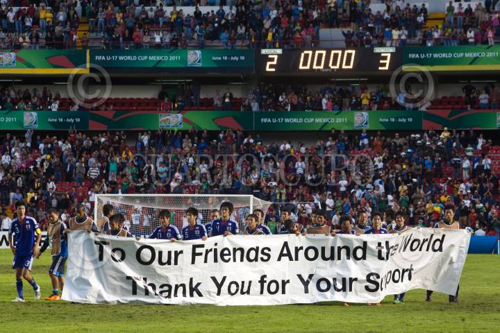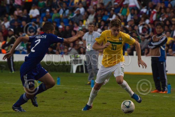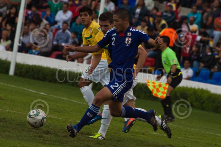 QUERÉTARO, QUERÉTARO, 03JULIO2011.- El equipo de Japón sucumbió ante su similr de Brasil con un marcador de 3 a 2 durante el partido correspondiente a cuartos de final de la Copa Mundial de Futbol Sub-17, celebrado en el Estadio Corregidora. FOTO: DEMIAN CHÁVEZ/CUARTOSCURO.COM