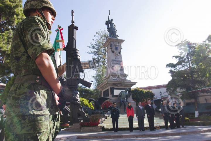 QUERÉTARO, QUERÉTARO, 14SEPTIEMBRE2011.- El gobernador del Estado, José Calzada, acompañado por el presidente Municipal Francisco Domínguez y autoridades legislativas llevaron acabo un homenaje a Doña Josefa Ortíz de Domínguez, quien formó parte del grupo de conspiradores en el movimiento de Independencia de México. FOTO: DEMIAN CHAVEZ/CUARTOSCURO.COM