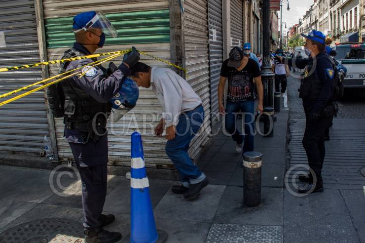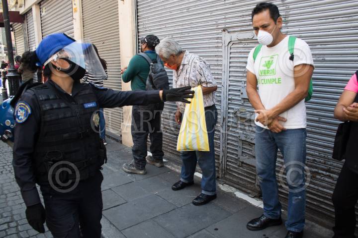 Personas hacen fila par poder ingresar a los negocios de herramientas de la calle Corregidora en el Centro Histórico