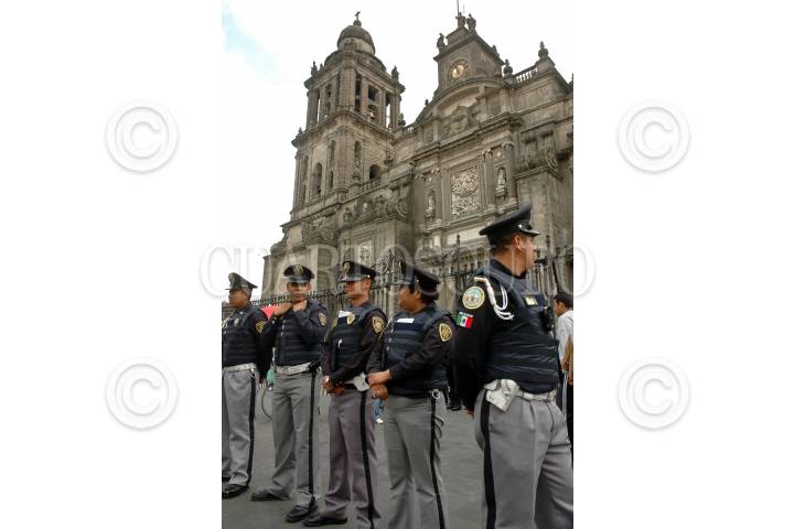 MÉXICO, D.F., 13ABRIL2008.- Elementos de seguridad publica custodiaron este medio día los alrededores y accesos de la Catedral Metropolitana. FOTO:RODOLFO ANGULO /CUARTOSCURO.COM