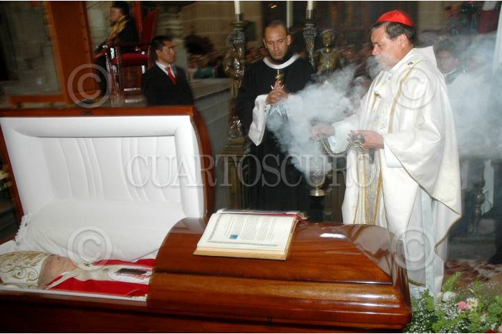 MÉXICO, D.F., 13ABRIL2008.- El cuerpo del ex Arzobispo y cardenal Ernesto Corripio Ahumada durante la misa de cuerpo presente que oficio el cardenal Norberto Rivera Carrera en la Catedral Metropolitana. FOTO:RODOLFO ANGULO /CUARTOSCURO.COM
