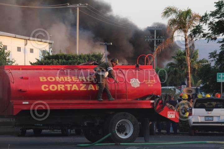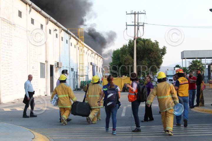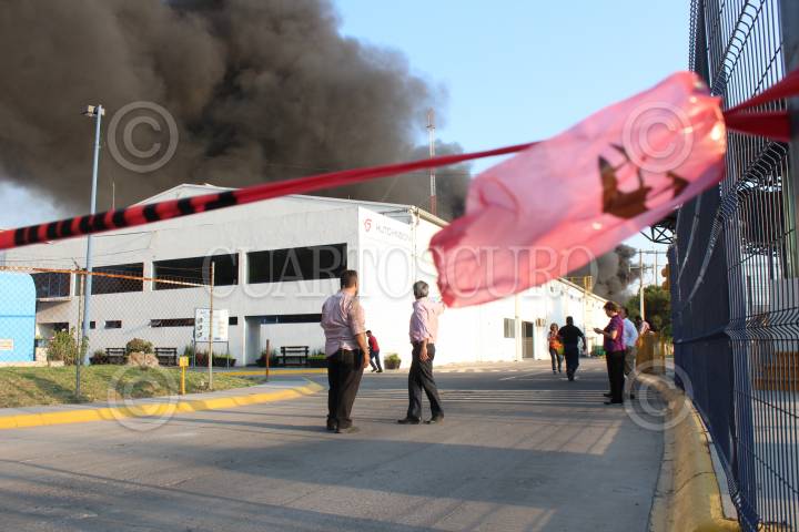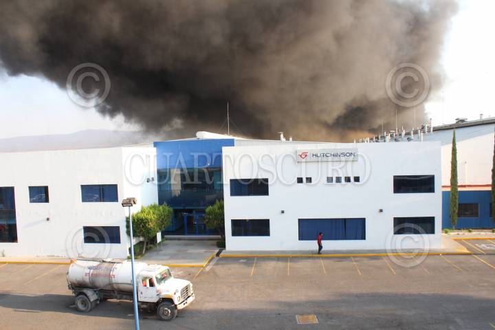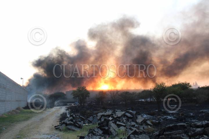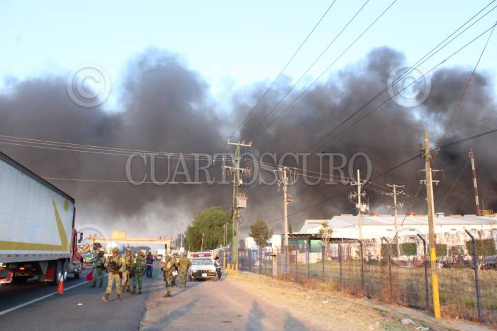 CORTÁZAR, GUANAJUATO, 16ABRIL2019.- El área de depósito de residuos de la fábrica planta de Hutchinson Pistones ubicada sobre la carretera Panamericana, registró un fuerte incendio el cual inició en la parte trasera de la planta, se salió de control y llegó hasta la nave central. Autoridades de Protección Civil y SEDENA, en sus últimos reportes indicaron la ausencia de personas lesionadas. FOTO: ALEJANDRO ROJAS /CUARTOSCURO.COM
