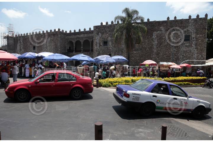 CUERNAVACA, MORELOS, 24JULIO2018.- La plaza frente al Palacio de Cortes se encuentra llena de sombrillas de comerciantes informales, impidiendo la vista general del monumento histórico. FOTO: MARGARITO PÉREZ RETANA /CUARTOSCURO.COM