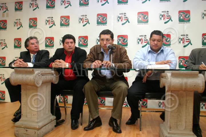 MEXICO, D.F., 27JULIO2006.- Liborio Rodríguez, Carlos Nolasco, Luis Figueroa y Oswaldo Cortez, integrantes del Colegiado Nacional de Organizaciones Adhrentes del PRI, ofrecieron una conferencia de prensa en el Cen del PRI en la que externaron su preocupación por el rumbo que ha tomado el proceso post electoral. . FOTO: Moisés Pablo/CUARTOSCURO.COM