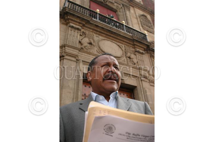 MÉXICO, D.F. 09ENERO2006.- El diputado local del PRD Balfre Vargas Cortez frente a palacio nacional antes de entregar una carta dirigida al secretario de Hacienda Agustin Carstens para que especifiquen los programas aprobados y discutidos de las partidas presupuestales de egresos del 2007. FOTO: SAÚL LÓPEZ/CUARTOSCURO.COM