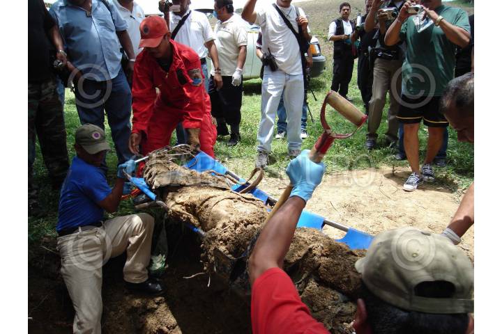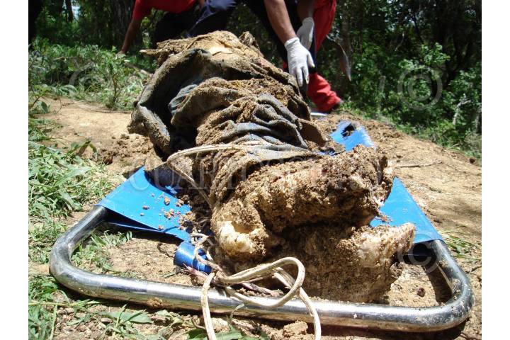 HUITECO, GUERRERO. 09JULIO2007.- Un sujeto fue encontrado ejecutado, atado de pies y manos, torturado y enterrado en las inmediaciones de la comunidad del Huiteco, cerca de Chilpancingo. En el lugar del hallazgo se encontro un casquillo de bala R-15 y se hicieron presentes elementos de diferentes corporaciones policiacas. Cabe mencionar que extraoficialmente se hizo mencion que el cuerpo podria pertenecer al ex judicial Francisco Cortez Pastenes lo cual no fue confrmado de manera oficial. FOTO: OSCAR ALVARADO/CUARTOSCURO.COM