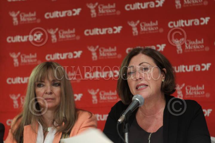MÉXICO, D.F., 28SEPTIEMBRE2010.- María Cortez de Icaza, directora de la Feria Internacional del Libro en el Zócalo y Elena Cepeda de León, secretaria de Cultura del DF, ofrecieron una conferencia de prensa para dar los detalles de la X Feria del Libro en el Zócalo de la Ciudad de México que se realizará del 8 al 17 de octubre. FOTO: MOISÉS PABLO/CUARTOSCURO.COM