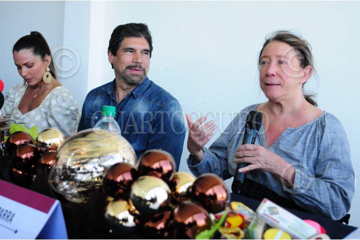De izquierda a derecha, Martha Julia, Alberto Estrella y Emoé de la Parra, actrices y actores que realizaron la conferencia del cortometraje.