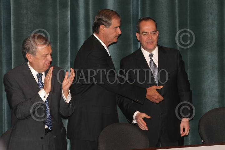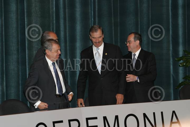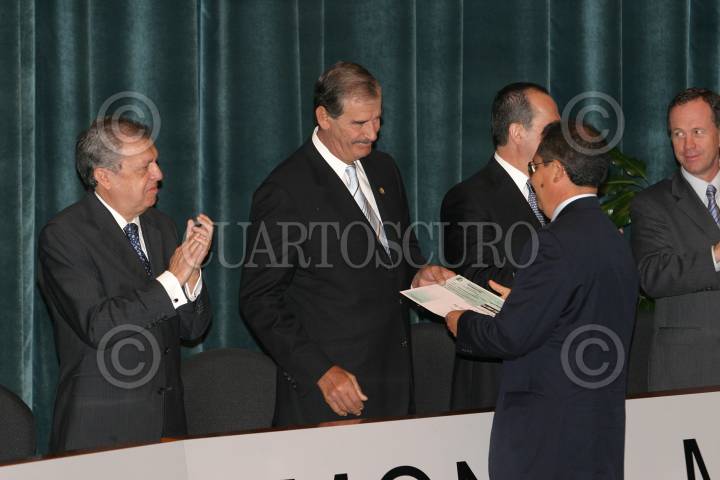 MEXICO, D.F. 15AGOSTO2006.- Jose Antonio Ceballos, director del Intituto Mexicano del Petroleo Soberanes, el presidente Vicente Fox y Luis Ramírez Corzo, Director General de PEMEX, durante la ceremonia por el 41 aniversario del Intituto Mexicano del Petroleo. FOTO: Nelly Salas/CUARTOSCURO.COM