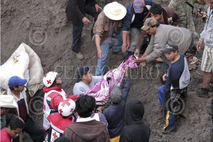 COSCOMATEPEC, VERACRUZ, 10SEPTIEMBRE2013.- Debido a un desgajamiento en una cantera de arena ocasionado por las fuertes lluvias que azotaron la zona de las altas montañas de la entidad veracruzana, dos viviendas fueron sepultadas en la comunidad de Xaltenango, 13 cuerpos han sido rescatados hasta ahora sin tener una cifra exacta de cuantos desaparecidos continúan bajo el lodo. FOTO: ANTONIO CRUZ /CUARTOSCURO.COM