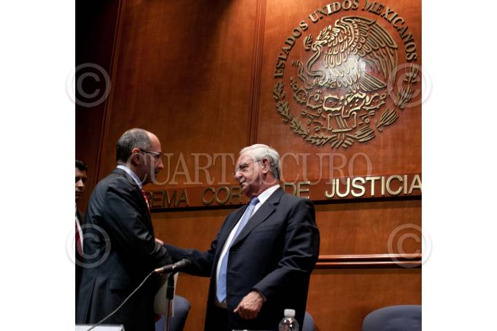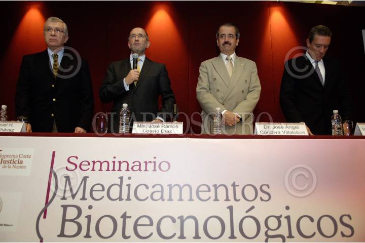 MÉXICO, D.F., 27AGOSTO2010.- José Ramón Cossío Díaz, ministro de la Suprema Corte de Justicia de la Nación (SCJN) y José Ángel Córdova Villalobos, Secretario de Salud, durante la clausura del seminario "Medicamentos Biotecnológicos", esto en la sede alterna del alto tribunal. FOTO: CUARTOSCURO.COM