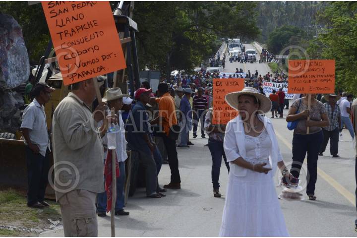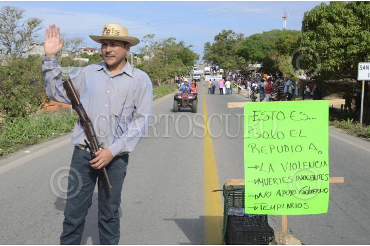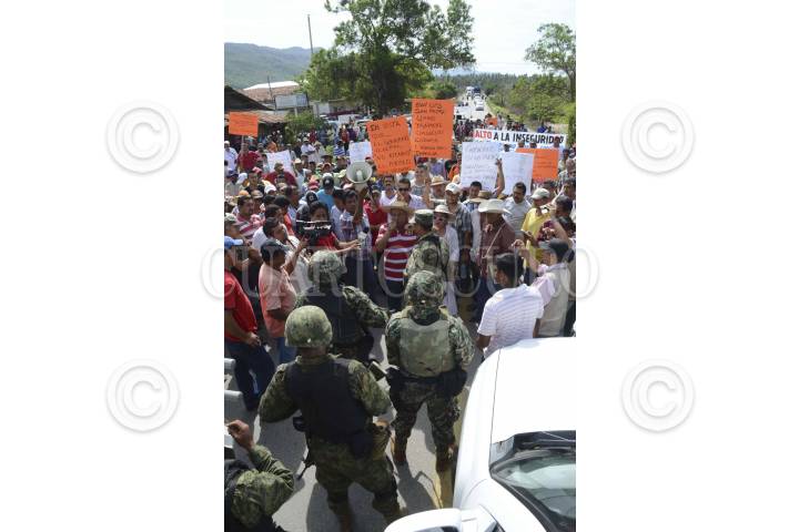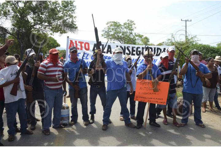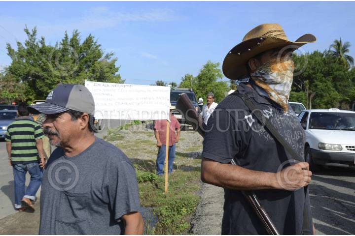 SAN LUIS LA LOMA, GUERRERO, 20JUNIO2013.- Pobladores y dirigentes comunitarios de distintas partes presentaron hoy un “Grupo de Autoprotección Ciudadana” que resguardará a la población ante los ataques de bandas delictivas que mantienen bajo acoso a las comunidades rurales. El nuevo grupo de autodefensa, que estará comandado por Azael Granados, fue presentado aquí este mediodía por el activista Leopoldo Soberanis Hernández, coordinador de la Alianza de Derechos Humanos Guerrero Unido. Soberanis Hernández dijo que ante la indolencia de los tres órdenes de gobierno, que se han negado a actuar contra la delincuencia, en coordinación con la Unión de Pueblos y Comunidades del Estado de Guerrero (UPOEG), que coordina Bruno Plácido Valerio, están en proceso de formación nuevos grupos de autodefensa en municipios como Coyuca, Atoyac, San Jerónimo, Petatlán, Zihuatanejo y La Unión, en la región de Costa Grande, así como en la región de Tierra Caliente que colinda con Michoacán, “que ha sido lastimada profundamente por la violencia”. Como protesta ante la creciente inseguridad, desde las 08:00 horas de hoy diferentes comunidades mantienen bloqueos intermitentes de la carretera federal Acapulco-Zihuatanejo, donde mantienen cierres constantes en diversos puntos geográficos de los municipios de Tecpan de Galeana, San Jerónimo y Coyuca de Benítez. Este corresponsal hizo un recorrido por la carretera Acapulco-Zihuatanejo, donde constató por lo menos media docena de bloqueos intermitentes en El Llano, San Luis La Loma, San Luis San Pedro, Nuxco, El Veinte y en algunas comunidades de la Sierra Madre del Sur. FOTO: BERNANDINO HERNÁNDEZ /CUARTOSCURO.COM