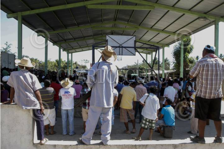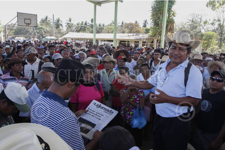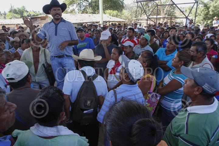 ACAPULCO, GUERRERO, 19ENERO2014.- El Consejo de Ejidos y Comunidades Opositores a la presa La Parota citó a directivos de las tres empresas extractoras de arena y grava que realizan labores actualmente en el Río Papagayo. Representantes de La Concepción en Cacahuatepec acudieron a la asamblea. Habitantes desean evitar que militares y marinos intervengan en la paz social; expresaron que “podemos autogobernarnos nosotros mismos”. FOTO: BERNANDINO HERNÁNDEZ /CUARTOSCURO.COM