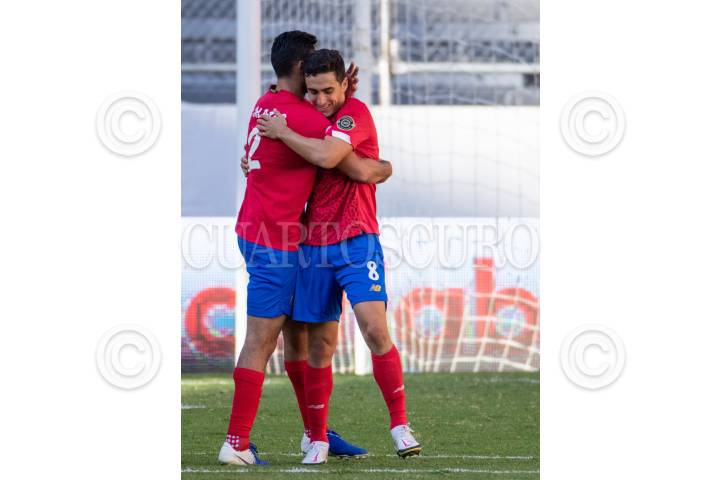 Costa Rica vence dos por cero a República Dominicana en el Preolímpio Masculino en Jalisco. En la imagen, Bernald Alfaro (8) celebra el segundo tanto.
