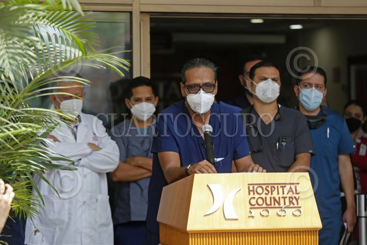 El doctor Francisco López y su equipo médico, hablan del estado de salud del cantante Vicente Fernández en el Hospital Country 2000.