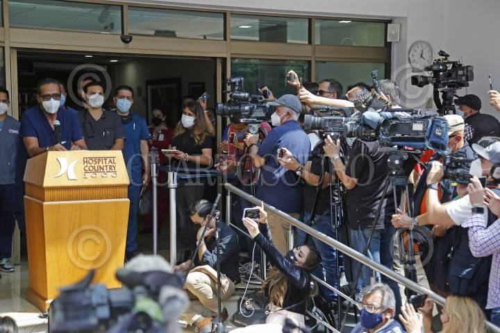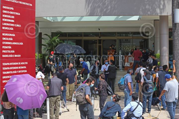 Un gran numero de medios de comunicación se dieron cita en el Hospital Country 2000 a la conferencia de prensa donde dieron un informe medico del cantante Vicente Fernández.