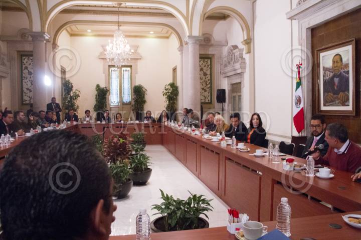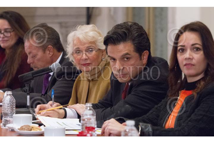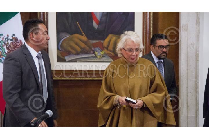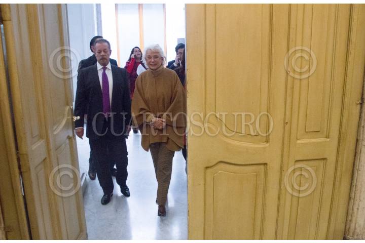CIUDAD DE MÉXICO, 12DICIEMBRE2018.- Olga Sánchez Cordero, titular de Gobernación acompañada del encargado de Comunicación Social Hector Gandini, platico con representantes de medios de comunicación esta tarde en el salón Juárez de la Segob. FOTO: VICTORIA VALTIERRA / CUARTOSCURO.COM