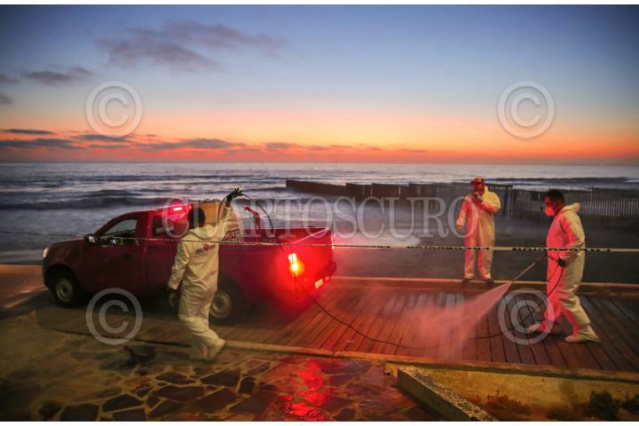 Ciudadanos sanitizan malecón de Playas de Tijuana