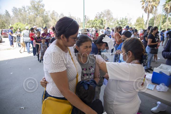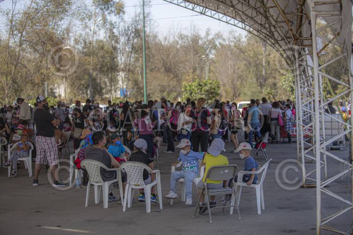 Decenas de personas formadas sobre Avenida Cuauhtémoc, esperan obtener una ficha para ser atendidos en el Macro Quisco COVID-19 de la Plaza Etiopía.