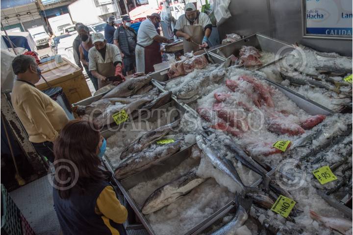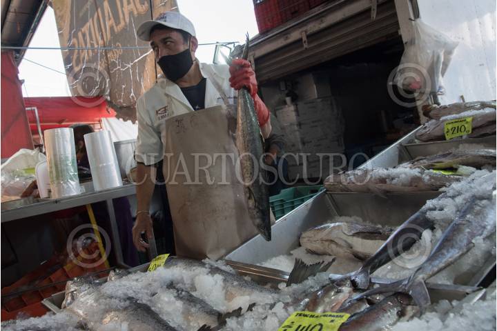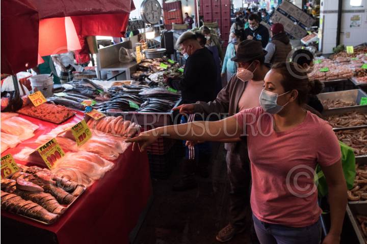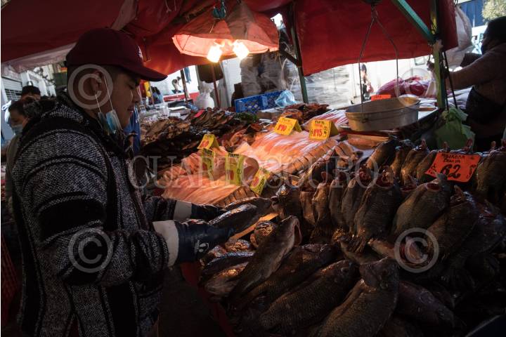 Personas asisten a realizar sus compras en el mercado "La Nueva Viga: Pescados y Mariscos" una vez iniciada la temporada de cuaresma.
