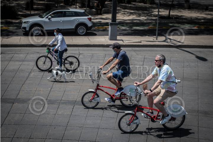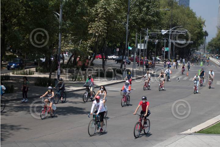 Cientos de capitalinos aprovechan la reapertura del “Paseo dominical” para salir en familia a recorrer las calles principales de la ciudad en bicicleta o caminando.