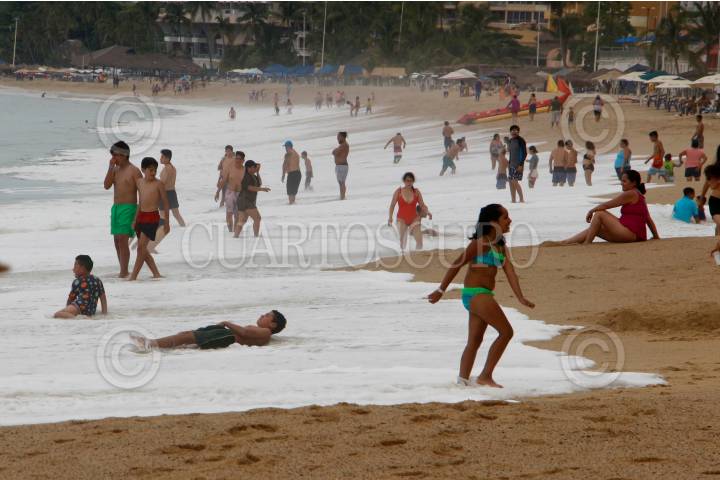 Las playas de Acapulco muestran gran afluencia de turistas esto a pesar de que las autoridades sanitarias han llamado a los turistas a que sus estancias sean breves debido a la alza de contagios de Covid-19 en el puerto.