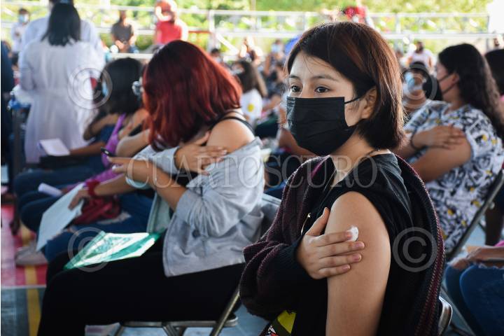 Jóvenes de 15 a 17 años sin comorbilidades son vacunados contra el Covid-19 en Campeche.