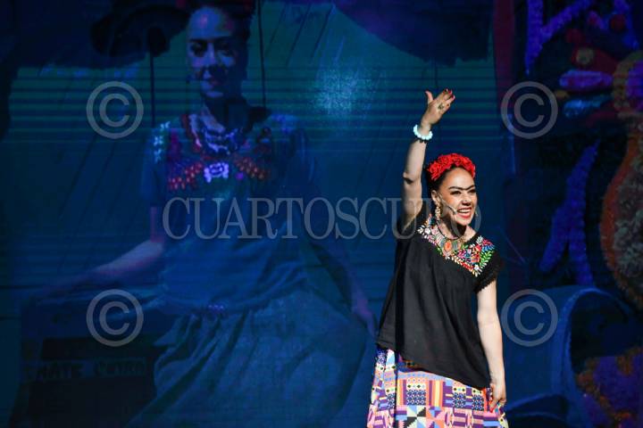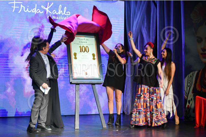 CIUDAD DE MÉXICO, 06SEPTIEMBRE2025.- Karen Espriu, actriz, durante la función especial por las cien representaciones de "Frida Khalo El Musical" en el Teatro Centenario Coyoacán. FOTO: MARIO JASSO/CUARTOSCURO.COM