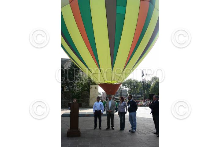 MÉXICO, D.F., 07NOVIEMBRE2009.- Esta mañana la secretaria de turismo del Distrito Federal encabezada por su secretario Alejandro Rojas Duran acudió a la exhibición del globo aerostático promocional de la Ciudad de México, donde decenas de personas se dieron cita en el jardín Hidalgo de la delegación Coyoacan. FOTO: SÁSHENKA GUTIÉRREZ/CUARTOSCURO.COM