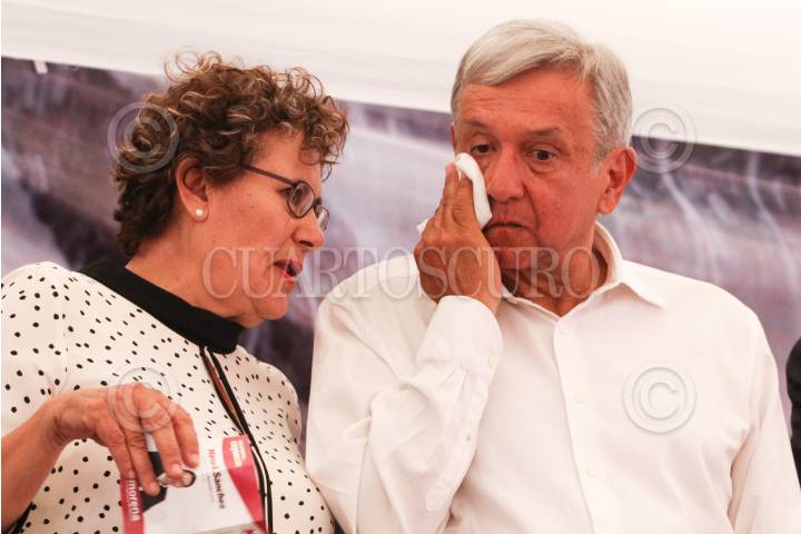 MÉXICO, DF., 21ABRIL2018.-El partido del Morena realiza su arranque de campaña en la delegación Coyoacán, lanzando a Bertha Lujan como candidata, acompañada de Andrés Manuel López Obrador. Durante el mitin los dirigentes del partido desmintieron los rumores sobre la presunta invención de la desaparición de niños en la misma delegación, sosteniendo que MORENA no necesita mentir para ganar votos. FOTO: ISABEL MATEOS /CUARTOSCURO.COM