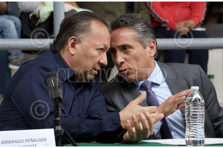 CIUDAD DE MÉXICO, 02JULIO2019.- Manuel Negrete, alcalde de Coyoacán, Severiano Peñaloza, Director del Deporte, encabezaron la presentación del programa "Coyoacán y tú, unidos para forjar campeones de vida", con dicho programa se busca que los niños y jóvenes se enfoquen en realizar actividades deportivas y se alejen de las drogas. FOTO: ROGELIO MORALES /CUARTOSCURO.COM
