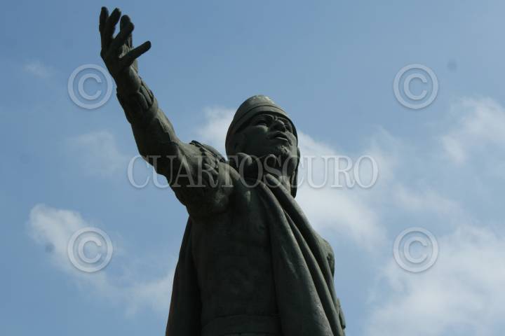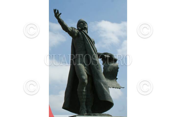 NEZAHUALCOYOTL, ESTADO DE MÉXICO 03FEBRERO2009.- Nezahualcóyotl, emperador texcocano y mejor conocido como -El Rey Poeta-, según algunas fechas registradas por historiadores, Nació el 4 de febrero de 1402 aunque otras fuentes dicen que fue el 28 de Abril de ese mismo año. Su nombre en náhuatl significa, Coyote Hambriento y a 607 años de su natalicio, sus obras todavía son motivo para actuales investigaciones, en 1472 falleció dejando el trono a su hijo. En el municipio de ese mismo nombre se mando a edificar una estatua y un monumento sobre la glorieta que se ubica en la avenida Pantitla, esquina con Adolfo Lopez Mateos FOTO: ENRIQUE ORDÓÑEZ/CUARTOSCURO.COM