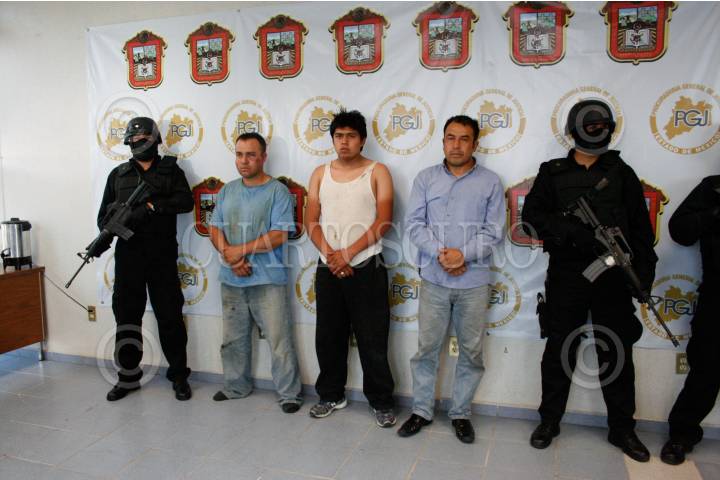 TLANEPANTLA, ESTADO DE MÉXICO 09JUNIO2009.- Mediante un operativo implementado en el municipio de Huehuetoca, por elementos de la Unidad de Análisis y Antisecuestros, apoyo de la Agencia de Seguridad Estatal y autoridades del Estado de Hidalgo, se logró la detención de Juan José Salvador Barajas, ex policía ministerial de la Procuraduría del Estado de México, de 37 años, alias “El Barajas”; Alejandro Ávalos Báez, también ex policía ministerial de ésta institución, de 38 años, alias “El Ávalos”, Alberto Ávalos Coyote, de 18 años y Héctor Hernández Piña, de 32 años, presuntos responsables del delito de secuestro. FOTO: CUARTOSCURO.COM