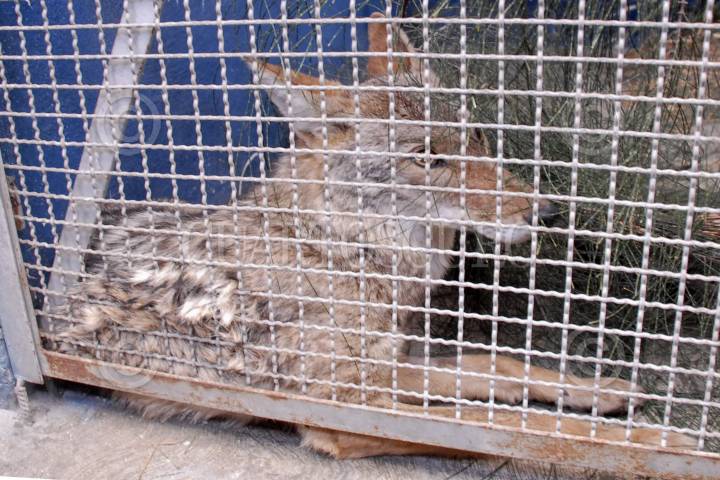 MÉXICO, D.F., 04MARZO2012.- Un Águila y un coyote fueron presentados en las instalaciones de Tlaxcoaque por policía de Protección Animal al ser recuperados luego de permanecer en cautiverio en distintas colonias de la capital por lo que serán trasladados a las instalaciones del zoológico en la ciudad. FOTO: LUIS CARBAYO /CUARTOSCURO.COM